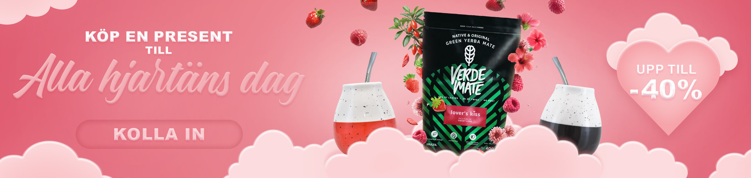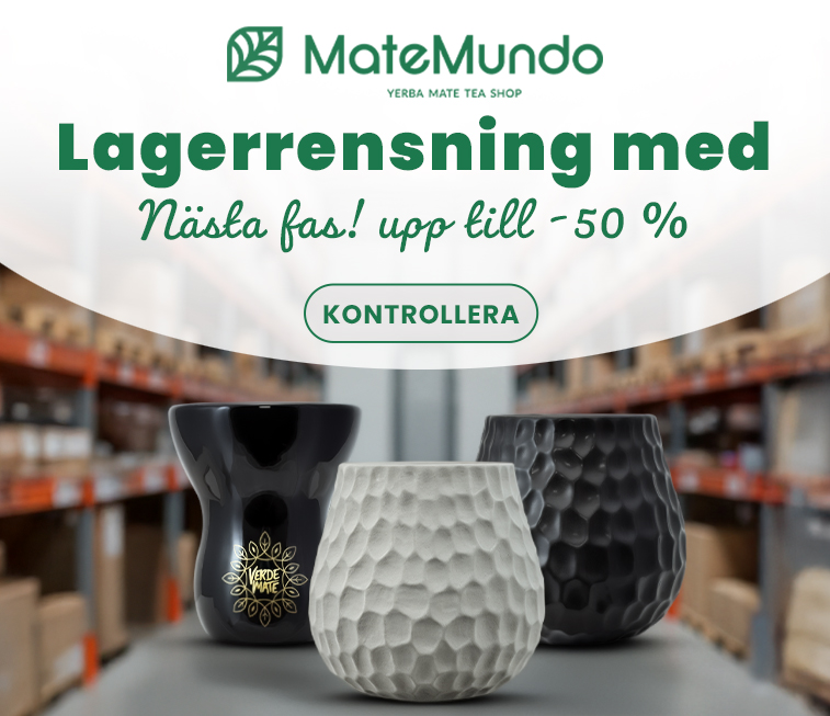 MateMundo.se är en webbutik med yerba mate som drivs av människor för vilka yerba mate är mer än bara en affärsverksamhet. Det är vår största passion som vi vill dela med oss av till andra. Tack vare vår långa närvaro på marknaden och ett välutvecklat distributionsnätverk erbjuder vår yerba mate-butik yerba mate-te och tillbehör till marknadens lägsta priser. Vårt rika utbud riktar sig till både avancerade och nybörjare entusiaster av stimulerande mate te-infusioner. Undrar du hur du ska komma igång med yerba mate? Letar du efter ett yerba mate startkit med alla nödvändiga tillbehör som kalebass och bombilla? Vad sägs om ett särskilt presentpaket? Eller kanske är du en erfaren yerba mate-drickare och letar efter en viss, svårfunnen mate-te-sort? I vår yerba mate-butik hittar du säkert det du söker!