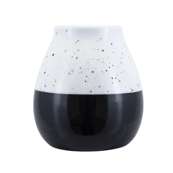 Keramisk kalebass "Caballo " - en praktisk, gediget tillverkad yerba mate-kalebass med en kapacitet på ca 350 ml. Kalebassens form är inspirerad av traditionella sydamerikanska kalebasser. Glaserad på in- och utsidan. Täckt av en ljus glasyr och dekorerad med svarta, oregelbundet spräckliga mönster. Den har en elegant avskärning i botten i svart färg. Den designade yerba mate-drickskalebassen kommer att komplettera utrustningen hos varje mateist perfekt!