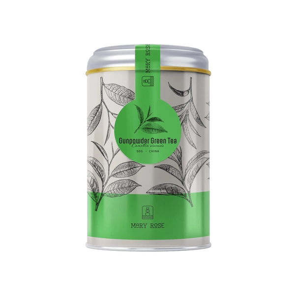 Gunpowder Green Tea från Mary Rose kommer från den östra delen av Kina. Namnet kommer av att teet liknar riktigt krut. Detta beror på att tebladen rullas till kulliknande knoppar som ett resultat av traditionell bearbetning. Infusionen har en distinkt bärnstensfärgad färg och en intensiv smak med en syrlig ton.