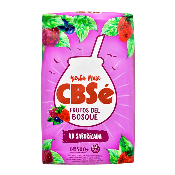 - CBSé Frutos del Bosque 0,5 kg 500 g är argentinsk yerba mate med smak av skogsfrukt. Den är delikat, balanserad och rik på koffein. Den stimulerar väl. Rekommenderas för nybörjare och avancerade!