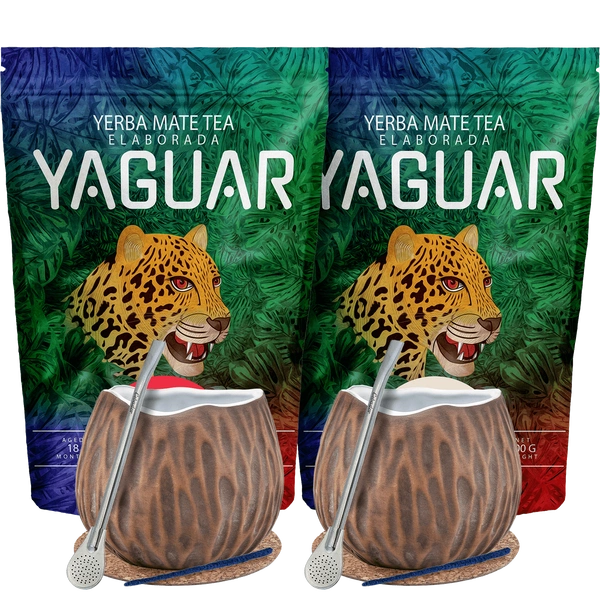 Yerba Mate set för två Bombilla Matero kokosnötter