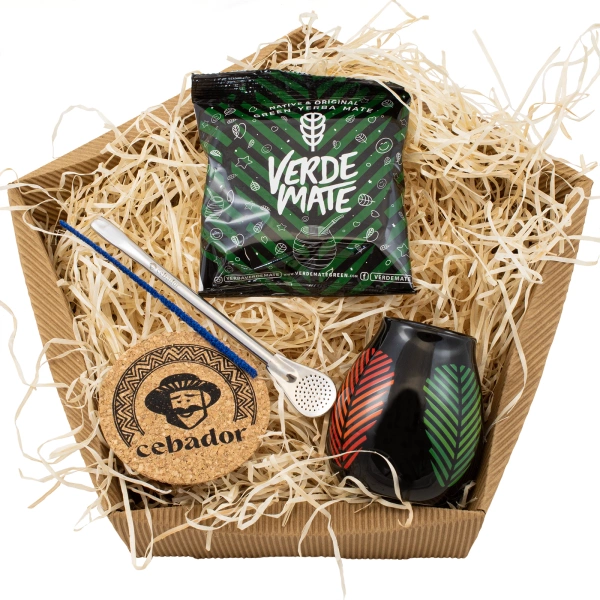 Presentpaket Yerba Mate: Verde Mate Frutos Tropicales 50g + Kalebass + Bombilla