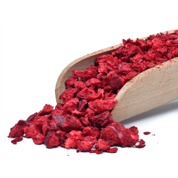 Freeze dried cherry is a delicious and healthy snack that delights with its wonderful qualities. Lyophilisation, a process of drying by freezing, preserves the natural flavour, aroma and colour of the cherry, as well as all its nutritional values, while extending its life. The light texture and long durability of freeze-dried cherries makes them an ideal snack for travel, school or work. They can also be used as an ingredient in baked goods, muesli, desserts or salads. Freeze-dried cherries can also be added to infusions – tea, herbs or yerba mate, introducing a juicy, fruity touch.