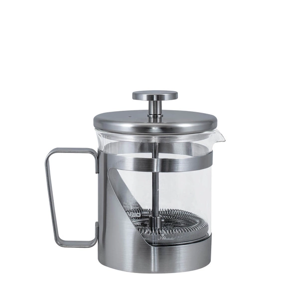 French Press bryggare gör att du kan göra kaffe, te, yerba mate och andra infusioner utan botten! Det är den perfekta lösningen för alla som vill tillreda sina infusioner snabbt och enkelt, utan en miljon olika tillbehör. Enheten är baserad på en enkel mekanism. Allt du behöver göra är att ta bort locket som är försett med en kolv och ett filterelement, fylla behållaren med malt kaffe, torkat te eller yerba mate och hälla i vatten. När brygden är klar trycker du långsamt ner kolven. På så sätt sjunker kaffet till botten och drycken som separerats från kaffet kan drickas med nöje! French Press rymmer 300 ml brygd - den perfekta kapaciteten för att tillreda 1-2 portioner utsökt brygd åt gången. Bryggaren tillverkas av det legendariska japanska varumärket Hario, som är känt för att producera högkvalitativa tillbehör för kaffebryggning. Den enhet vi erbjuder är inte annorlunda. French Press Hario 7 kännetecknas av högkvalitativt utförande och elegant design. Det är ett absolut måste i köket för alla som älskar aromatiskt kaffe, värmande te, stimulerande yerba mate och andra läckra infusioner!