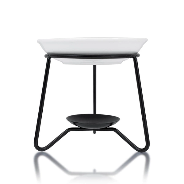 - En elegant aromaterapibrännare med metallram och keramikskål - perfekt för daglig avkoppling med en kopp te eller yerba mate. Utformad för uppvärmning av eteriska oljor eller doftvax med värmeljus.