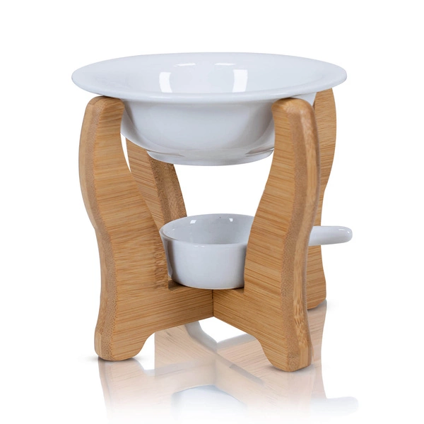 - En elegant aromaterapibrännare med träram och keramikskål - perfekt för naturliga eteriska oljor eller doftvax. Skapa en fristad i hemmet med avslappning och atmosfär med en enkel aromaterapiritual!