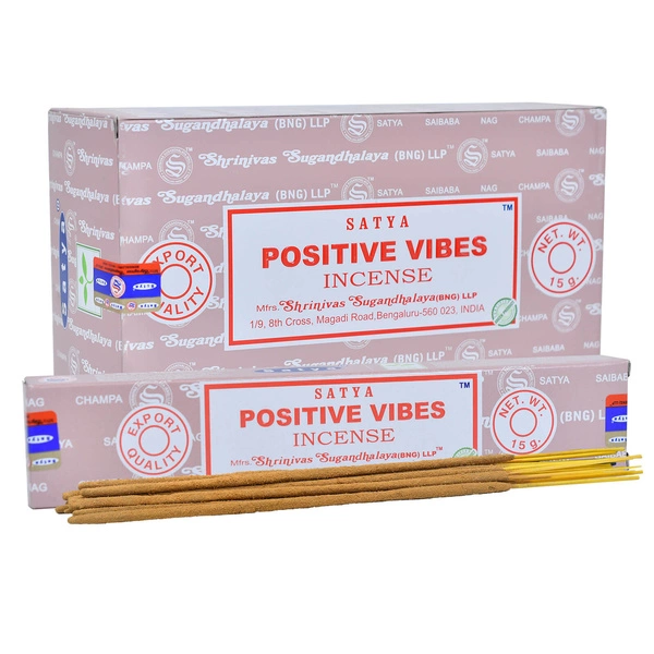 - Satya Positive Vibes rökelse - handrullade indiska rökelsepinnar med en blommig och träig doft. De lugnar, renar och höjer vibrationerna. Perfekt för meditation, yoga och för att skapa en positiv atmosfär hemma eller på arbetsplatsen.