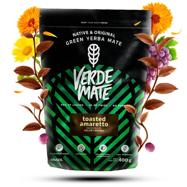 • Verde Mate Amaretto Tostada är en rostad yerba mate med djup, dessertliknande smak av mandel och söta ingredienser. Aromen, som är inspirerad av italiensk amaretto, ger den en unik och elegant karaktär.