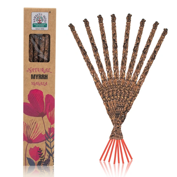 - Namaste India Myrrh - naturliga rökelsepinnar med en varm, hartsartad myrra-doft. Handgjorda i Indien av naturliga ingredienser. Perfekt för avslappning, meditation och för att skapa en lugn atmosfär i hemmet.