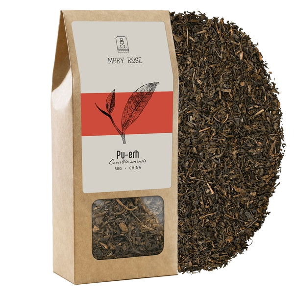 Ett klassiskt puerh-te. Under tillverkningen sker en traditionell fermenteringsprocess med ädelsvamp. Det är anledningen till att de torkade tebladen har en gråbrun färg. När teet bryggs får man en mörk kaffeliknande infusion med en intensiv smak. Pu-erh-te kan hällas upp flera gånger.