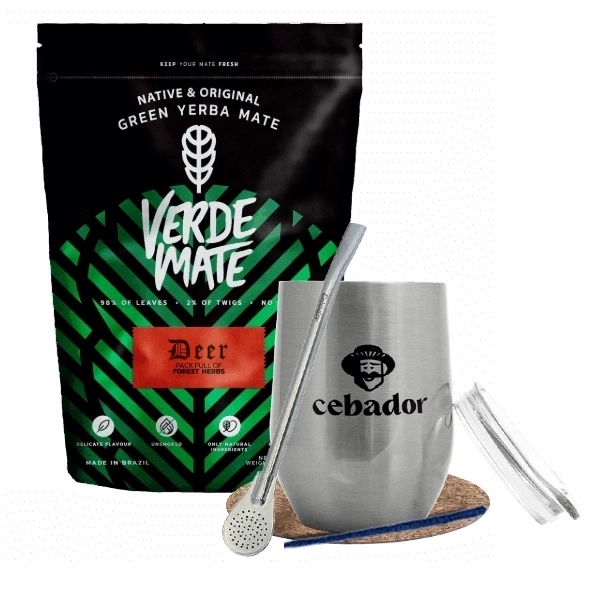 Yerba Mate Set: Verde Mate Deer 500g + TermoLid + Bombilla
