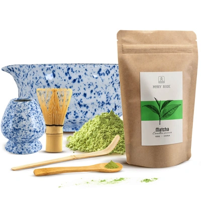 Set med 2 kinesiska matcha‑teer: premium + kulinarisk